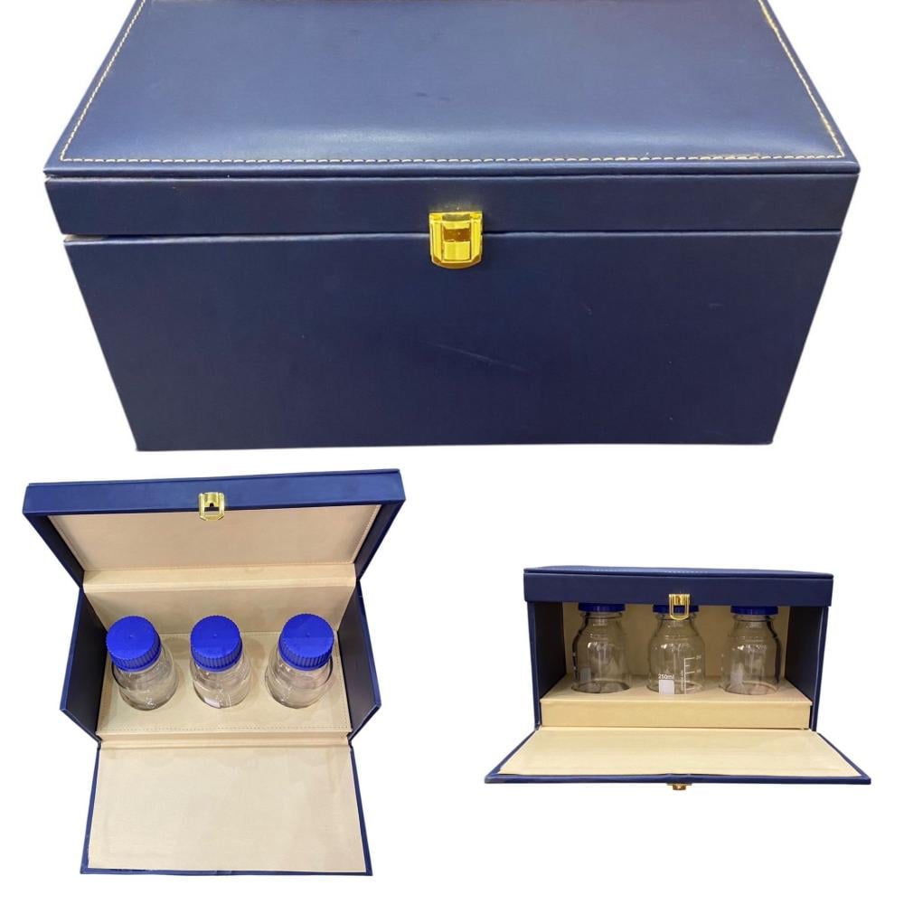 شنطة جلد فاخره لحفظ الأدهان مرفق معها ٣ زجاجات حجم ٢٥٠ مل