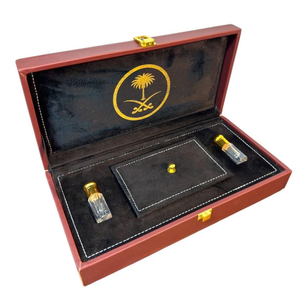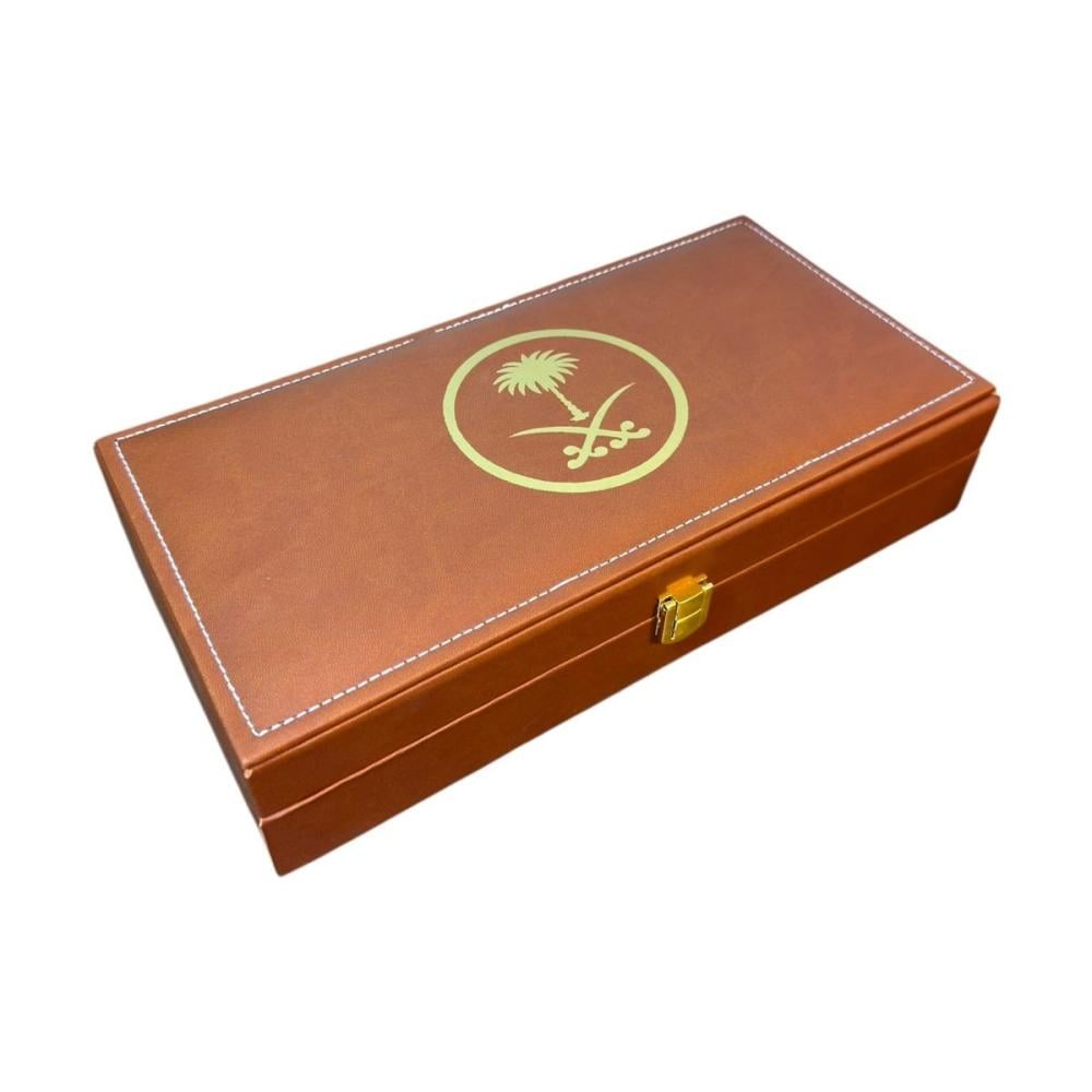 شنطة جلد لحمي ومن الداخل أسود مخمل فرنسي مستطيلة سيفين ونخلة (أوقية +2ربع توله)